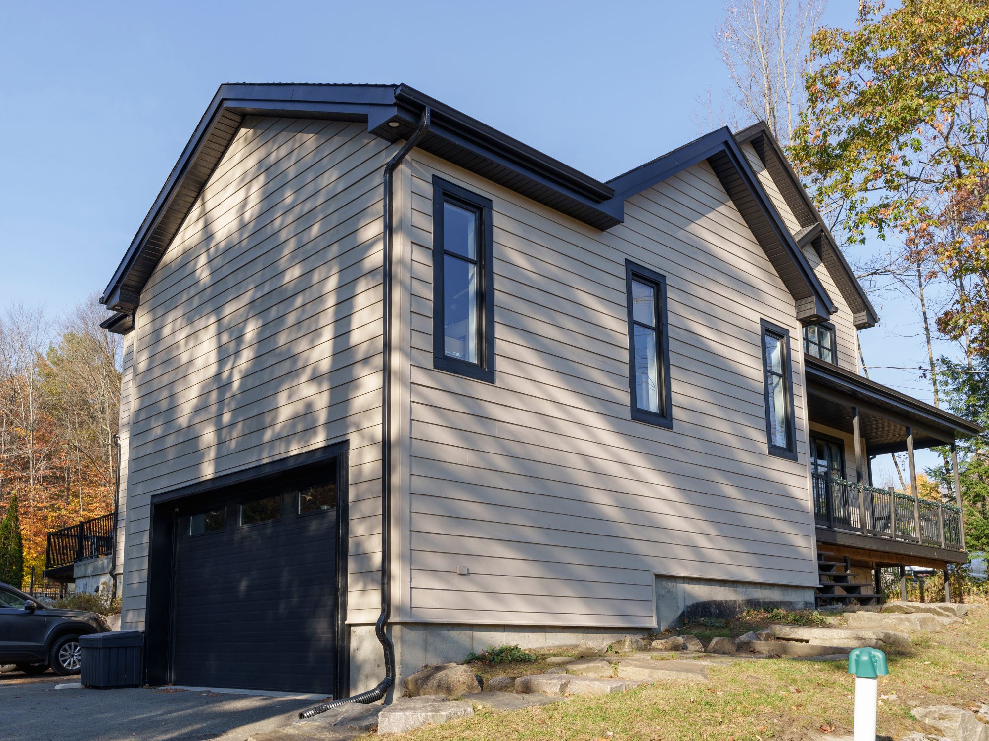Peinture au spray d'un revêtement de bois véritable à Saint-Jérôme.